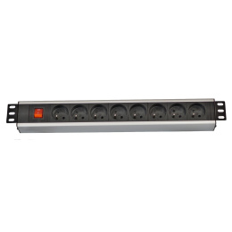 19" rozvodný panel LEXI-Net 8x230V, ČSN, vypínač, indikátor napětí, kabel 3m, 1U