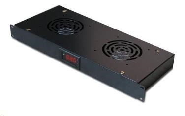 19" ventilační jednotka XtendLan, 2 ventilátory, LCD display, termostat, hloubka 200mm, černáUniverzální ventilační jednotka do 19" rozvaděčů.
