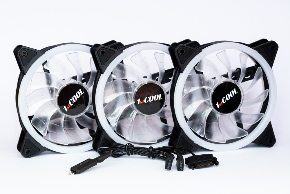 1stCOOL KIT AURA EVO4 ARGB, 3x Dual Ring ventilátor + ARGB Nano / Reset řadič. Kompletní set umožňuje i připojení jakéhokoli dalšího ARGB příslušenství vybaveného standardním 3pin ARGB konektorem.
