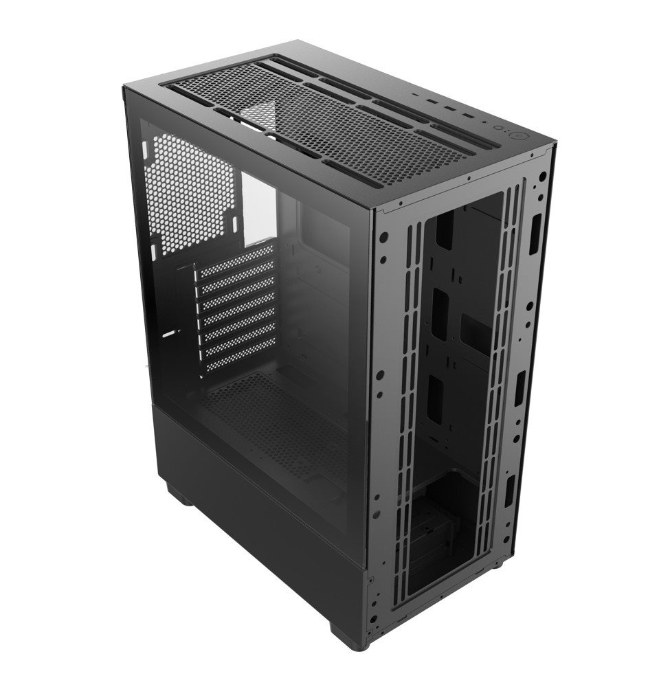 1stCOOL skříň GAMER 5, Mid tower, AU, USB 3.0, USB-C, bez zdroje, černáProvedení skříně:Midi Tower; Barva skříně:Černá; Počet pozic 3.5" (HDD):3; Počet pozic 2.5" (SSD):4; Vybavení PC skříně:Bez integrovaného zdroje, Přední Audio panel, Přední USB panel.