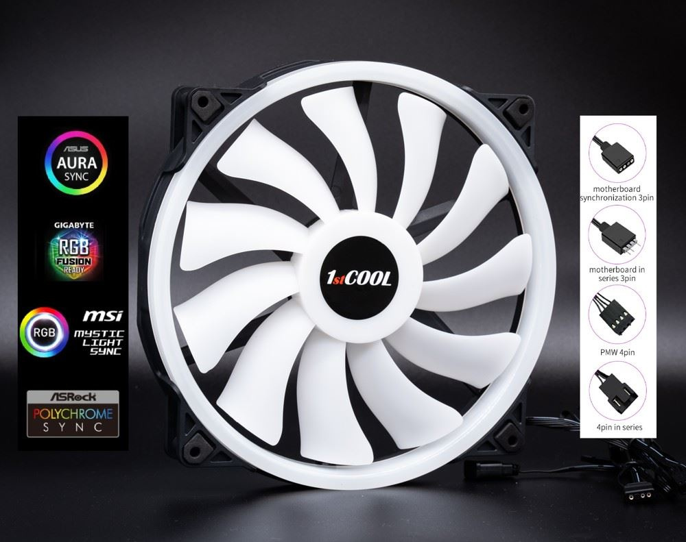 1stCOOL Ventilátor AURA EVO, 200mm, ARGBTyp chladiče:Aktivní; Využití chladiče:Do PC skříně; Velikost ventilátoru:200x200; Barva podsvícení:RGB; Napájecí konektor:3pin, 4pin.