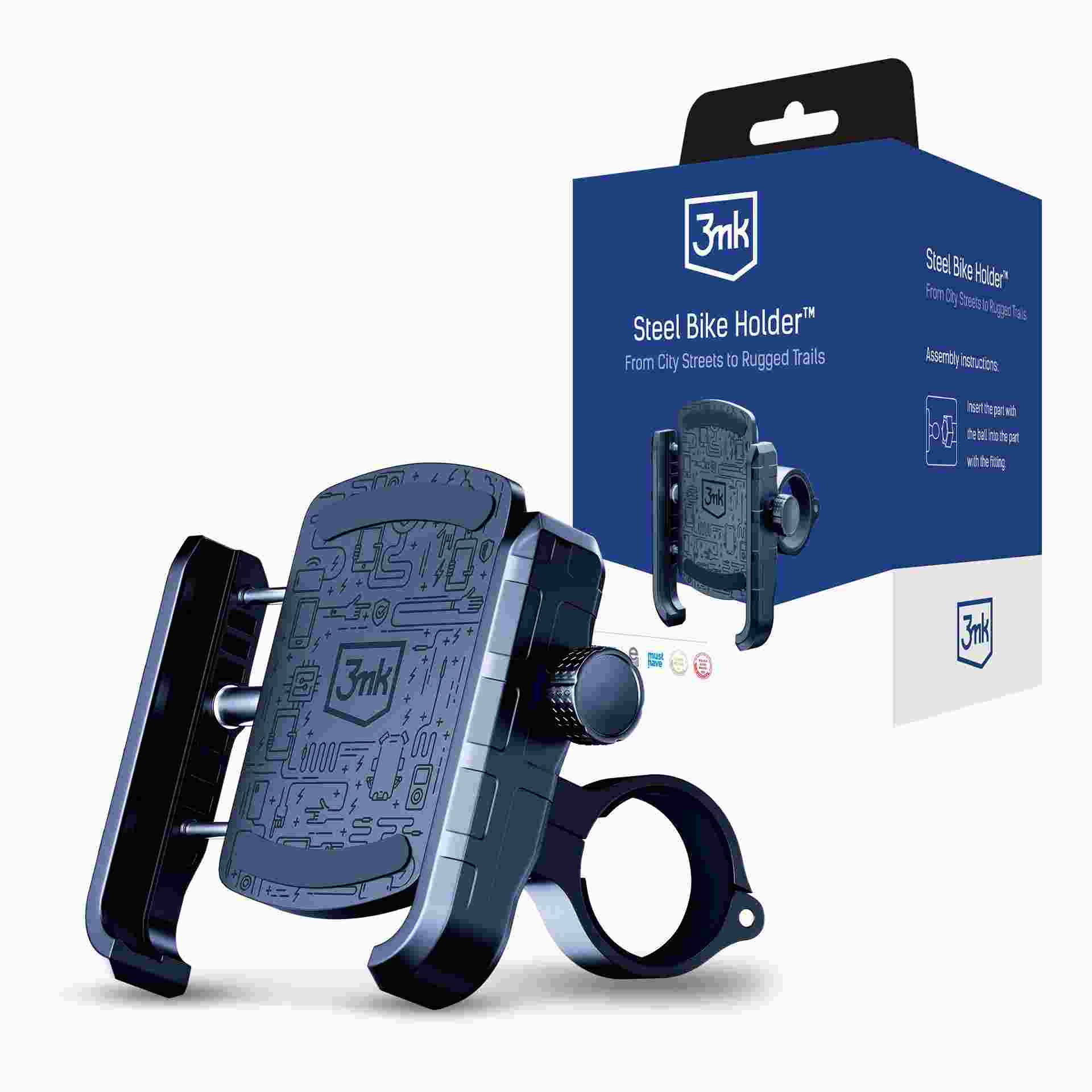 - Užijte si jízdu bez vibrací s 3mk Steel Bike Holder™. Díky promyšlené konstrukci zůstává telefon stabilní i při těch nejnáročnějších expedicích. Užijte si plynulou navigaci a neustálý přístup ke všem potřebným funkcím, aniž byste ztratili kontrolu nad řídítky.