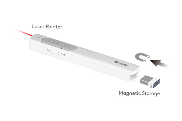 A4tech 2.4G bezdrátový laserový prezentér & ukazovátko, bíláTyp příslušenství:Ukazovátka.