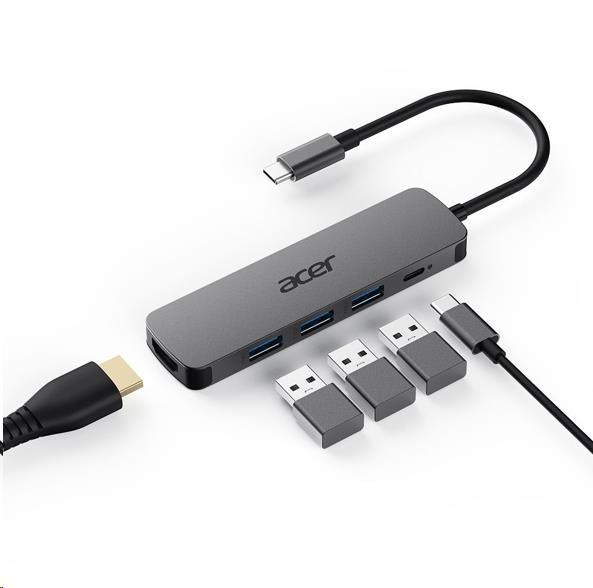 Acer 5IN1 Type- C dongle,HDMI,USB3.0,USB-C,100W PD,Dark SilverTyp příslušenství:Dokovací stanice a replikátory.