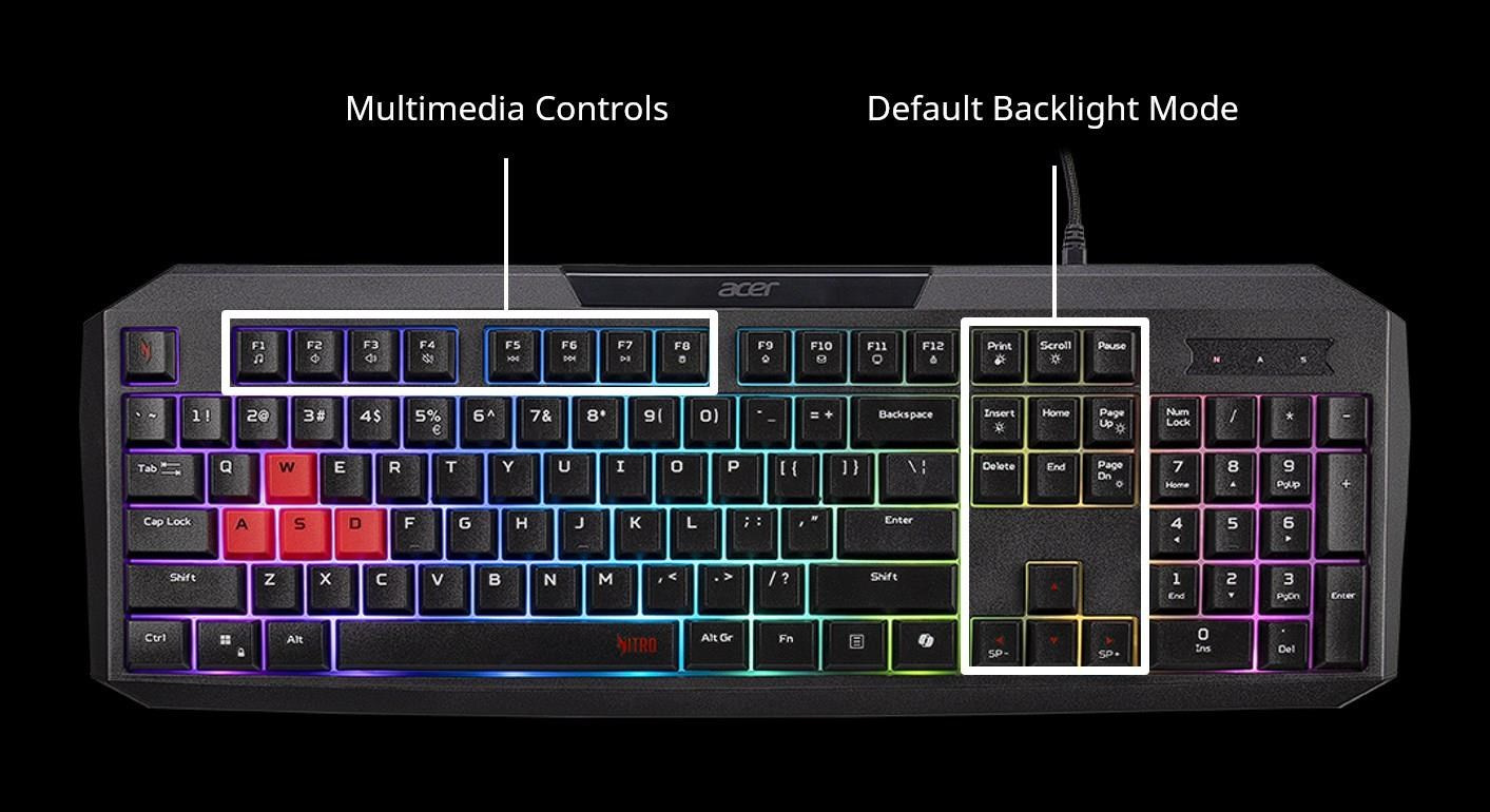 Diskuze k produktu ACER Nitro Gaming Keyboard 100, Membrane Switch, 26 Anti-ghosting kláves, životnost 3 mil. stisků, 7 zón RGB podsvíc