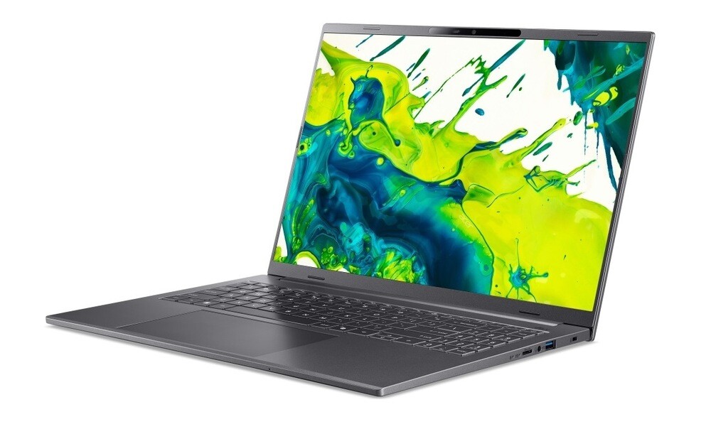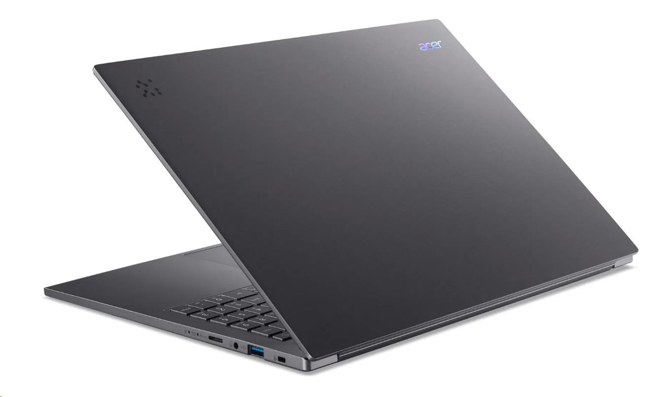 Už na první pohled zaujme prémiové hliníkové šasi v decentní šedé barvě Steel Gray. S tloušťkou necelých 18 mm a nízkou hmotností 1,49 kg je Acer Aspire 16 AI lehce přenosný a vhodný na cesty. Po otevření se vám představí úžasný 16" antireflexní IPS displej s jemným rozlišením WUXGA (1920 × 1200 px), poměrem stran 16 : 10 a obnovovací frekvencí až 120 Hz. S jasem 350 nitů uvidíte vše jasně i v prosvětlené místnosti.