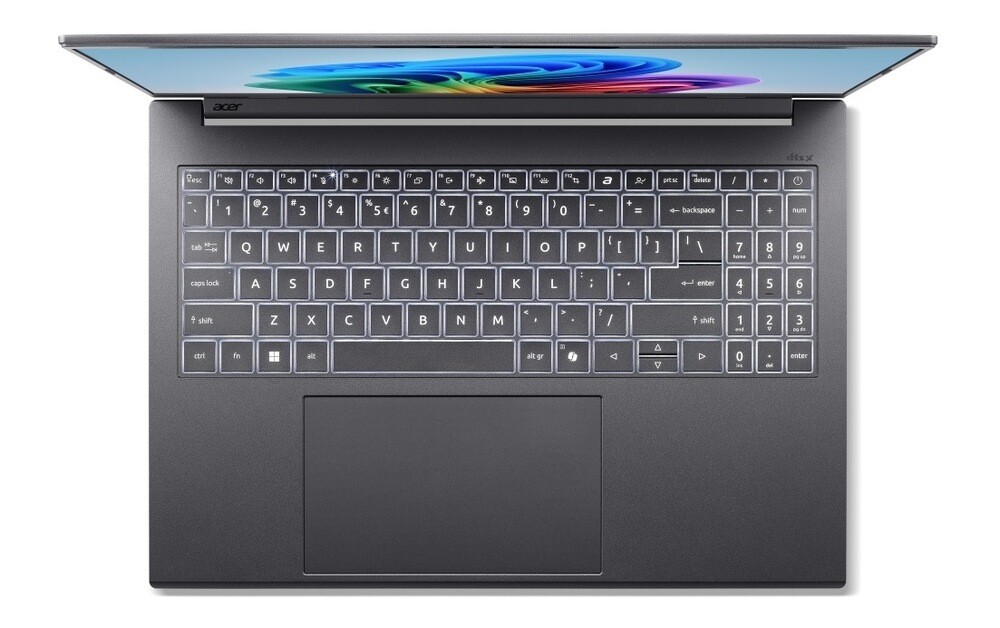 Podsvícená klávesnice s numerickým blokem zpříjemní práci i v horších světelných podmínkách. Notebook je vybaven také speciální klávesou Copilot, která vás okamžitě přenese do světa AI nástrojů. Nechybí ani klávesa Acer Sense pro rychlou správu systému.