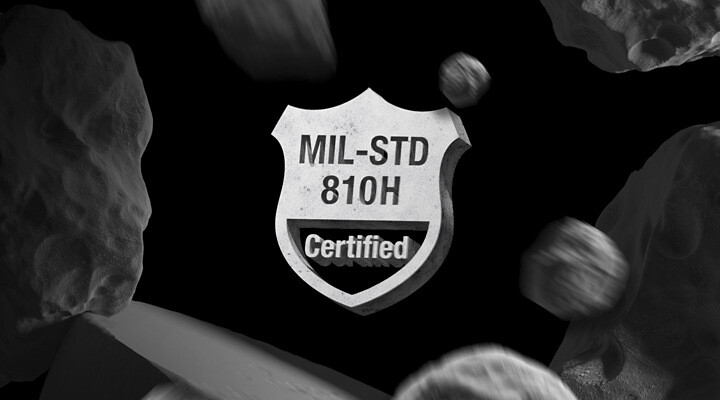 Soustřeďte se na svou práci a starost o výdrž zařízení přenechte jiným. Počítač byl vyroben v souladu s vojenskými standardy MIL-STD-810H a musel projít náročnými testy, zaměřujícími se na zvýšenou odolnost vůči pádům, náhodným úderům, extrémním teplotním výkyvům či dokonce působení tlaku a dalších přírodních živlů včetně vody.