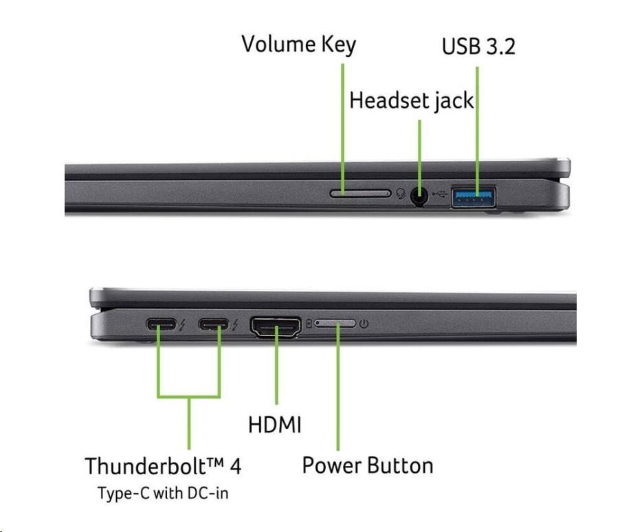Notebook Acer Chromebook Spin 714 je vybaven webkamerou s rozlišením QHD MIPI s technologií časové redukce šumu, dvěma horizontálně uloženými reproduktory a dvěma mikrofony. S tak robustním systémem si budete moci vychutnat čistý zvuk a vysoce kvalitní video – dokonce i za nízkého osvětlení.