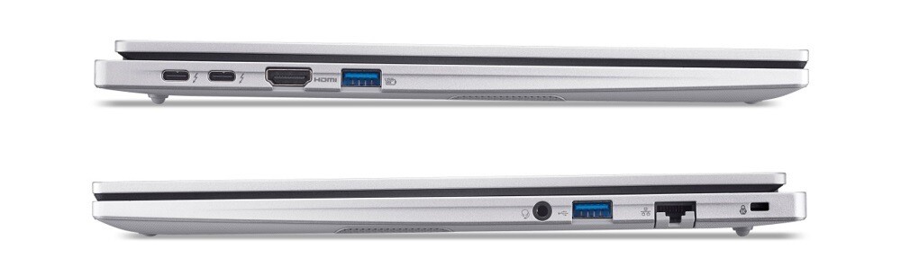 Rychlé a bezpečné bezdrátové připojení zajišťuje Wi-Fi 6E 802.11ax a Bluetooth 5.3. Pro kabelové připojení je k dispozici spolehlivý Gigabit Ethernet (RJ-45) port. Notebook je vybaven bohatou sadou portů, včetně dvou moderních USB-C 3.2 Gen 2, které podporují DisplayPort, nabíjení a rychlý přenos dat až 10 Gb/s. Nechybí ani dva USB-A 3.2 Gen 1, HDMI 2.0 pro snadné připojení externího monitoru, čtečka microSD karet či 3,5mm Jack pro připojení sluchátek.