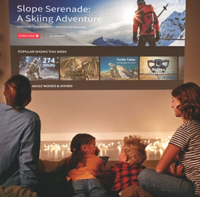 Užijte si oblíbené filmy a seriály na obrovské 100palcové obrazovce s donglem certifikovaným pro Android TV. Hlasové ovládání navíc přináší rychlý přístup k oblíbeným pořadům a filmům. Připojení je pak zajištěno bezdrátově pomocí Wi-Fi.