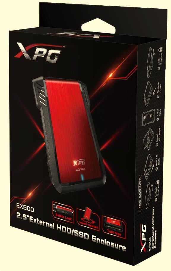 Kód: 414419Prodejní číslo: AEX500U3-CRDADATA Externí BOX EX500 2,5" USB 3.0 (7 mm/ 9.5mm HDD/SSD)