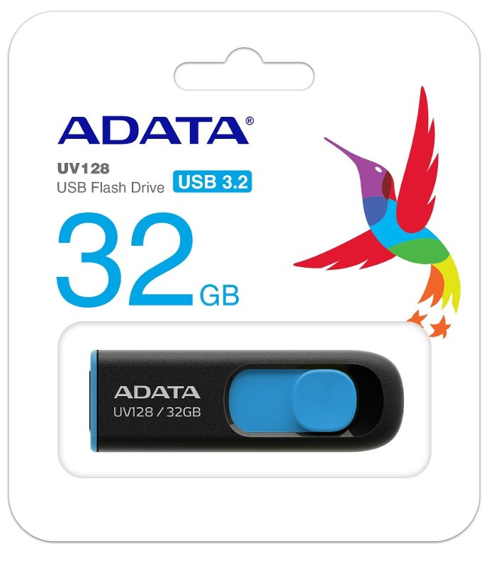 ADATA Flash Disk 32GB UV128, USB 3.1 Dash Drive (R:40/W:25 MB/s) černá/modráKapacita uložiště:32 GB; Verze USB:3.1.