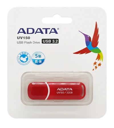 ADATA Flash Disk 32GB UV150, USB 3.1 Dash Drive (R:90/W:20 MB/s) červenáKapacita uložiště:32 GB; Verze USB:3.1.