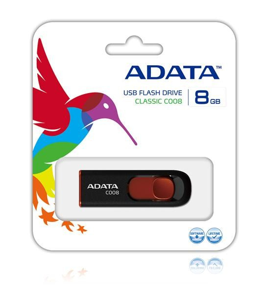 Elegantní USB flash disk s výsuvným USB konektorem, který hladce vysunete z disku palcem. Provedení bez krytky eliminuje nepříjemné potíže se ztracenou krytkou. USB konektor lze rychle a pohodlně připravit k použití jen jednou rukou. Elegantní provedení bez krytky konektoru USB konektor je ukryt v kompaktním těle, kde je plně chráněn bez nutnosti používat krytku. Jednoduchým pohybem palce vpřed je flash disk ihned připraven k použití a zpětným pohybem zase rychle schováte konektor pro potřeby skladování nebo cestování. Váš osobní styl C008 je navržen s otvorem na poutko, takže jej snadno připojíte ke klíčům nebo k mobilnímu telefonu. * řemínek není součástí výrobku. Půvabný a minimalistický design Matně texturované tělo je odolné proti poškrábání a zároveň odpuzuje špínu. C008 má elegantní tvar a dodává se ve dvou stylových barevných kombinacích. Jednoduché křivky této série jsou módní, ale zároveň ji činí také mnohem pohodlnější. Součástí každého C008 je také zajímavý a cenný software: - Nástroj OStoGO vám pomůže převést vaše instalační DVD systému Microsoft Windows 7 do přenosného úložného zařízení a umožní vám tak pohodlně a rychle nainstalovat Windows 7 díky bootování z USB bez nutnosti použití optické jednotky. - Mocný nástroj UFDtoGo synchronizuje data, e-maily a vaše oblíbené položky a poskytuje vám opravdovou mobilitu. - Norton Internet Security 2011 (60-denní zkušební verze) chrání vaše data před viry a jinými škodlivými procesy. Registrací vašeho produktu ADATA online získáte tuto ochranu zdarma. *Software zdarma ke stažení a registrace produktů jsou k dispozici pouze pro produkty ADATA s natištěnou ochrannou známkou pro stahování software. Specifikace: - Rozměry: 59,6 x 19,5 x 9,5 mm - Hmotnost: 10 g - Rozhraní: USB 2.0 - Hot Plug & Play - Napájení přes USB sběrnici - Podporované OS: Windows 98 / 2000 / XP / Vista / 7, Mac OS 9.0 nebo novější, Linux kernel 2.4 nebo novější