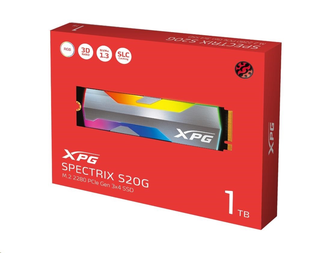 ADATA SSD 1TB XPG SPECTRIX S20G, PCIe Gen3x4 M.2 2280 (R:2500/W:1800 MB/s)Použití disku:Pro PC; Formát:M.2; Rozhraní:NVMe; SSD Kapacita (GB):1000; Typ disku:SSD NVMe; Rychlost čtení MB/s:2500MB/s a víc; Rychlost zápisu MB/s:1500MB/s a víc; Typ paměti SSD:3D; Chladič disku; Životnost zápisu SSD v TB:Min. 600 TBW.