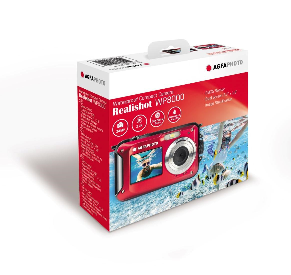 AGFAPHOTO Realishot WP8000 RedTyp fotoaparátu:Digitální kompakty; Megapixely:8; Optický zoom (v násobcích):1; Rozlišení videa:1080p; Typ paměťové karty:micro SD; Rozhraní:USB; Funkce:Voděodolný; Formát médií:AVI, JPEG.