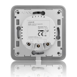 Napájecí napětí: 230V AC / 50 Hz Maximální spínaný výkon: 600 W pro spínače řazení 1, 6 a 7 300 W pro spínače řazení 5 Proudová ochrana: Nad 2\.6 A (Pokud je ochrana aktivována, LightSwitch vypne odpojí napájení a odešle notifikaci do aplikací Ajax). Teplotní ochrana: Nad 60 °C (Pokud je ochrana aktivována, LightSwitch vypne odpojí napájení a odešle notifikaci do aplikací Ajax). Připojení: Fázový vodič (nulový vodič není vyžadován)