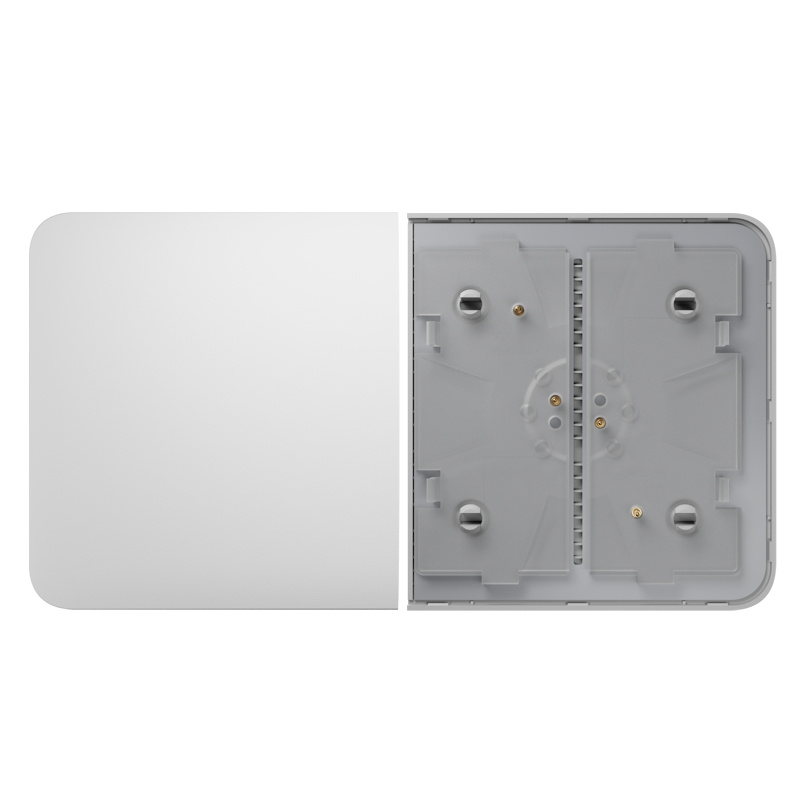 Kombinovaný vypínač se skládá ze 2, 3, 4 nebo 5 relé, dotykových tlačítek a rámečku s odpovídajícím počtem otvorů. Místo vypínače lze použít i inteligentní zásuvku Ajax
