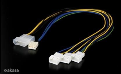 - redukce pro připojení až tří kusů ventilárorů s konektorem 3-4pin PWM, umožňuje připojení do jediného konektoru na základní desce.