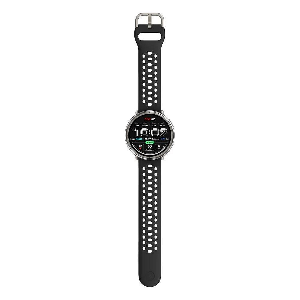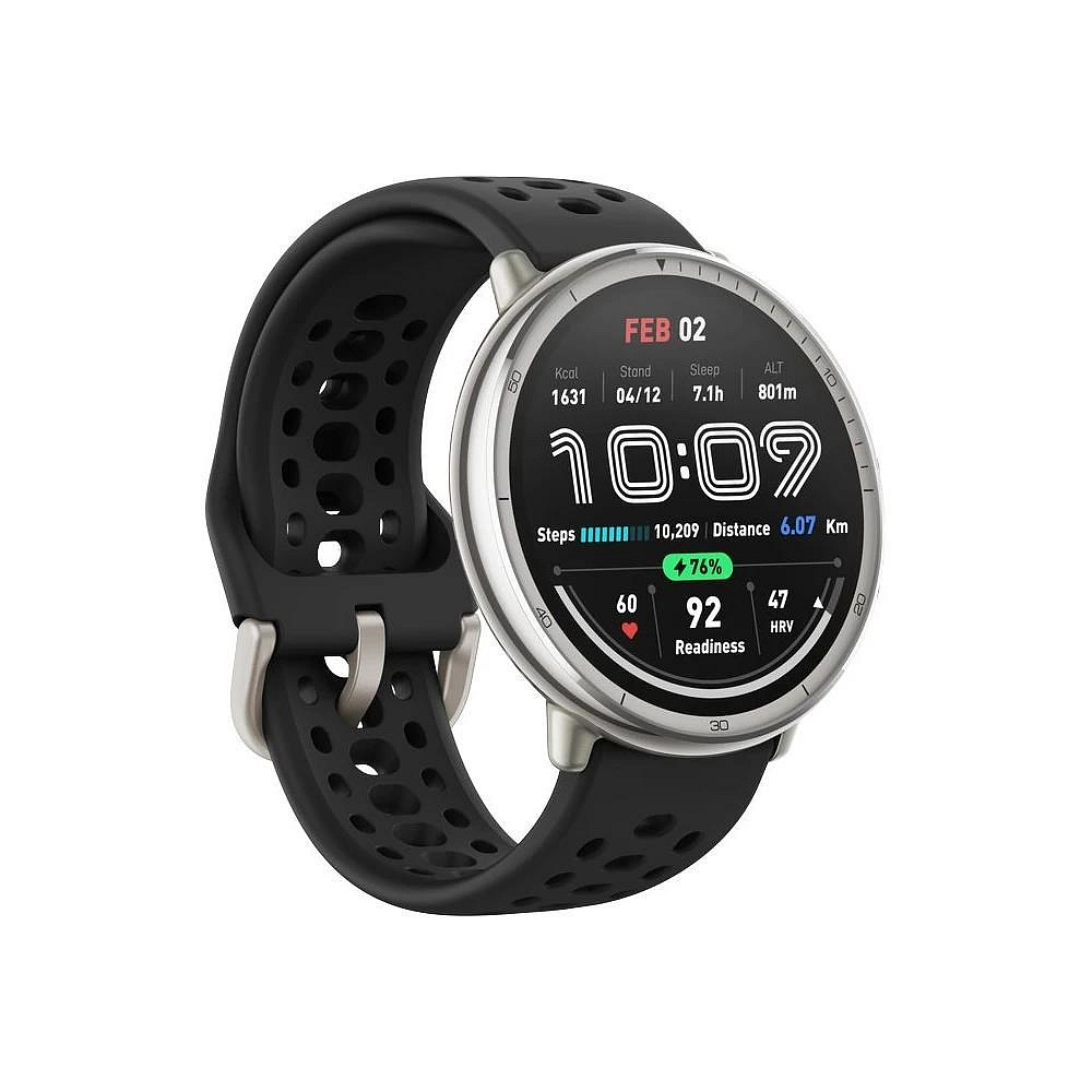 Elegantní kulaté tělo hodinek je vyrobeno z odolné nerezové oceli, takže bez problémů zvládne každodenní nošení i intenzivní trénink. Dominantou je kvalitní AMOLED displej, který díky špičkovému jasu až 2 000 nitů zůstává perfektně čitelný i na přímém slunečním světle. Ať jsi venku nebo uvnitř, obraz je vždy ostrý, jasný a přehledný.