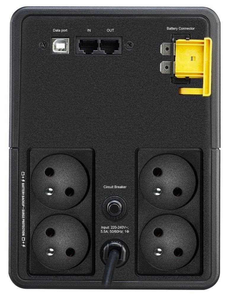 APC Back-UPS 1200VA, 230V, AVR, French Sockets (650W) - CZ zásuvkaPočet výstupních zásuvek:4; Použití:Desktop; Provedení:Tower; Zdánlivý výkon VA:1200; Topologie:Line-Interactive; Fáze (Vstup/Výstup):1:1; Komunikace:USB; Možnosti:Výstupní zásuvky FR (vidlice); Typ výstupu:FR; Ochrana telefonní sítě; Ochrana datové sítě.