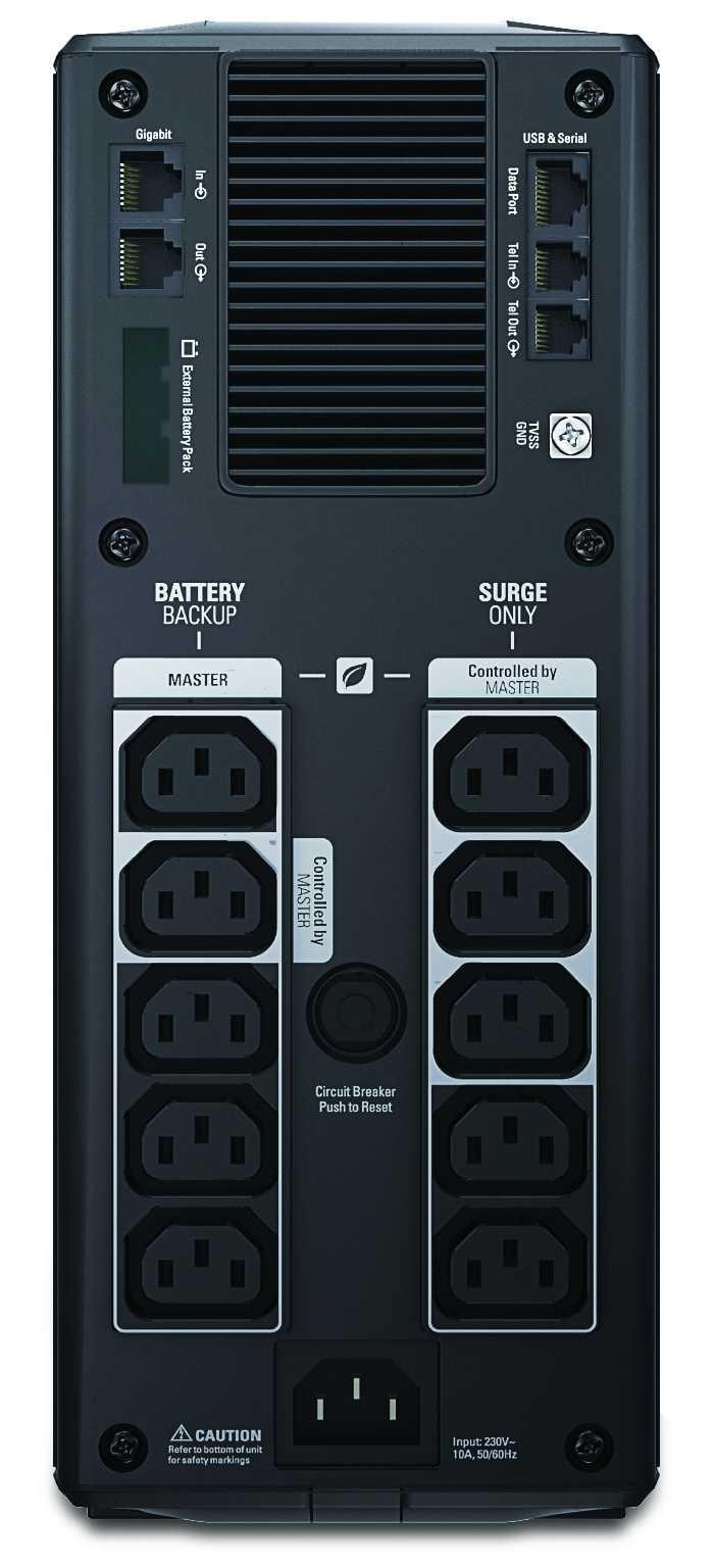 APC Back-UPS Power-Saving Back-UPS RS 1500, 230V (865W)Počet výstupních zásuvek:10; Použití:Desktop; Provedení:Tower; Zdánlivý výkon VA:1500; Topologie:Line-Interactive; Fáze (Vstup/Výstup):1:1; Komunikace:USB; Možnosti:Prodloužení záložního času; Typ výstupu:IEC 13; Ochrana telefonní sítě; Ochrana datové sítě.