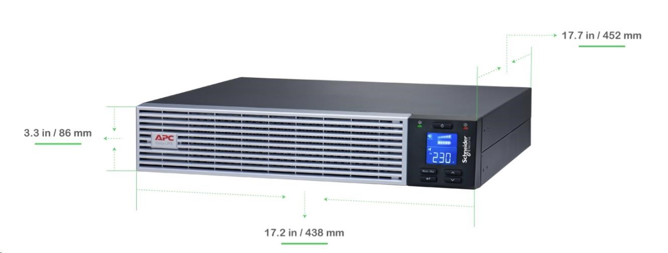 Máte k produktu dotaz? Zeptejte se nás.Hodnocení produktu APC Easy UPS On-Line, 1000VA/900W Li-ion, Rack/Tower 2U, 230V, 6 IEC C13 outlets, Intelligent Card Slot, W/ rail kit
