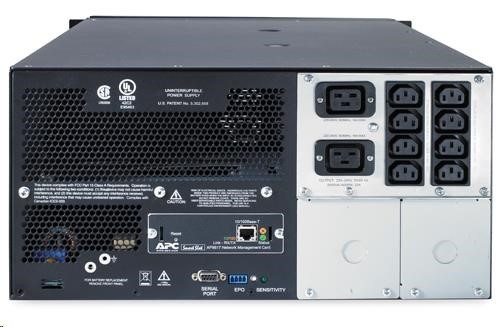 APC Smart-UPS 5000VA 230V Rackmount/Tower, 5U (4000W), Network cardPočet výstupních zásuvek:10; Použití:Server; Provedení:Tower, Tower/Rack, Rackmount; Zdánlivý výkon VA:5000; Výška v Racku:5U; Topologie:Line-Interactive; Fáze (Vstup/Výstup):1:1; Komunikace:RS232, MNGMT karta; Možnosti:EPO konektor; Typ výstupu:IEC 13, IEC 19.