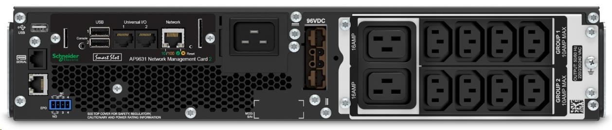 APC Smart-UPS SRT 3000VA RM 230V, On-Line, 2U, Rack Mount (2700W) Network Card AP9641On-Line UPS.
