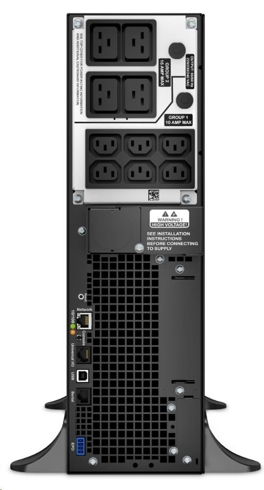 APC Smart-UPS SRT 5000VA 230V, On-Line (4500W)Počet výstupních zásuvek:10; Použití:Server, Data Center; Provedení:Tower, Tower/Rack; Zdánlivý výkon VA:5000; Výška v Racku:3U; Topologie:On-Line; Fáze (Vstup/Výstup):1:1; Komunikace:USB, DB-9 - RS-232, MNGMT karta; Možnosti:Prodloužení záložního času, EPO konektor; Typ výstupu:IEC 13, IEC 19.