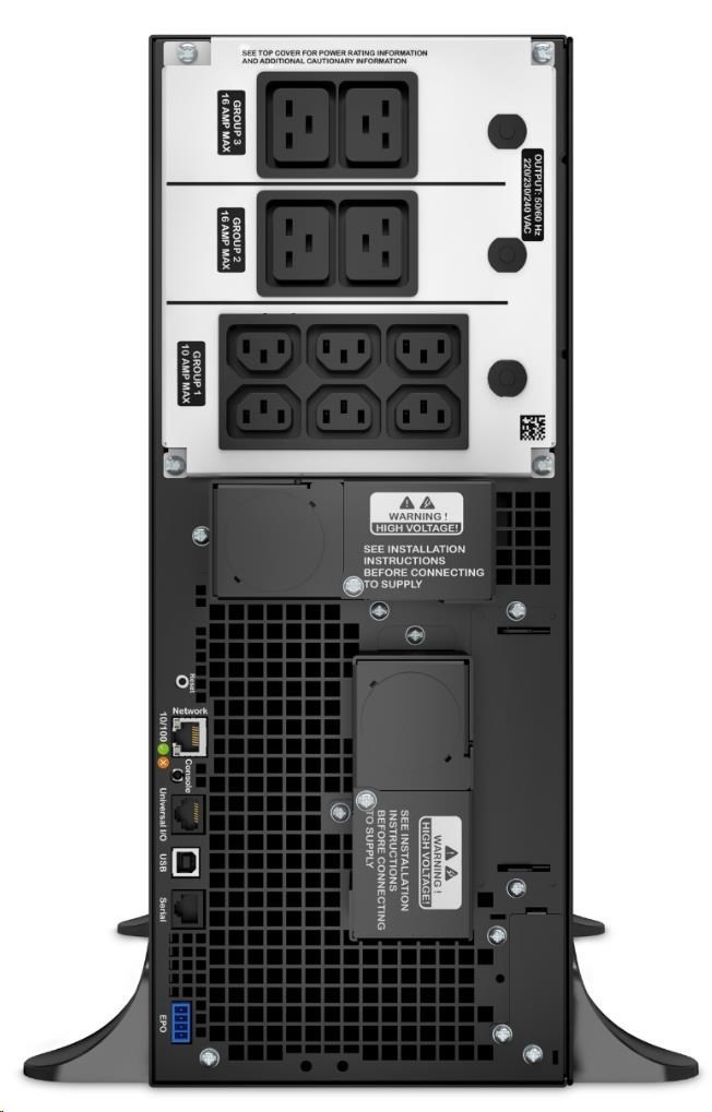 APC Smart-UPS SRT 6000VA 230V, On-Line (6000W)Počet výstupních zásuvek:10; Použití:Server, Data Center; Provedení:Tower, Tower/Rack; Zdánlivý výkon VA:6000; Výška v Racku:3U; Topologie:On-Line; Fáze (Vstup/Výstup):1:1; Komunikace:USB, DB-9 - RS-232, MNGMT karta; Možnosti:Prodloužení záložního času, EPO konektor; Typ výstupu:IEC 13, IEC 19, Svorkovnice.