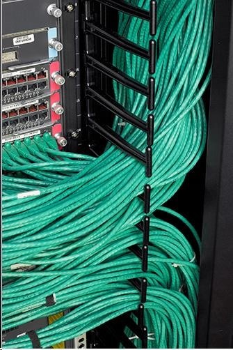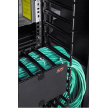 2dílné sekce správy kabeláže mají u každé pozice 1U hladké plastové výstupky, které umožňují uspořádaný vstup a výstup propojovacích kabelů.