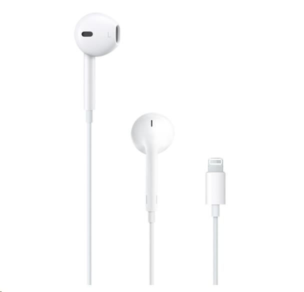 APPLE EarPods sluchátka s Lightning konektoremSluchátka s mikrofonem - pecky, uzavřená konstrukce, Lightning, s ovládáním hlasitosti, délka kabelu 1,2 m.