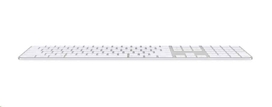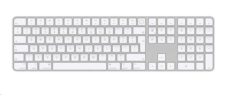 APPLE Magic Keyboard with Touch ID and Numeric Keypad for Mac computers with Apple silicon - International Englishklávesnice • numerická • pro Mac • membránová • bezdrátová • nízkoprofilové klávesy • americká (mezinárodní) lokalizace kláves • Bluetooth a USB.