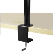 The monitor arm can be mounted on most surfaces with the sturdy and adjustable clamp which fits the edge of your desk in various thicknesses.