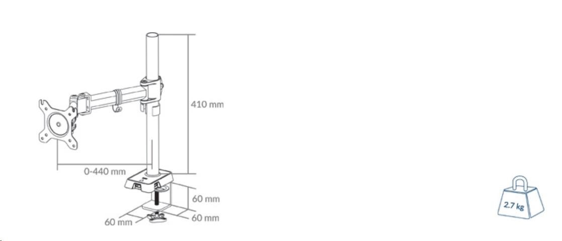 Maximum Monitor Weight: 15 kg (33 lbs) per mount
