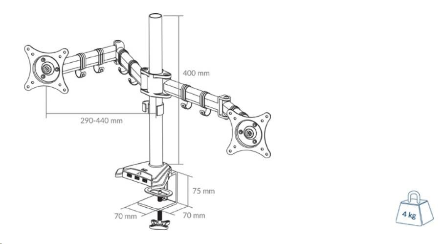 Maximum Monitor Weight: 15 kg (33 lbs) per mount
