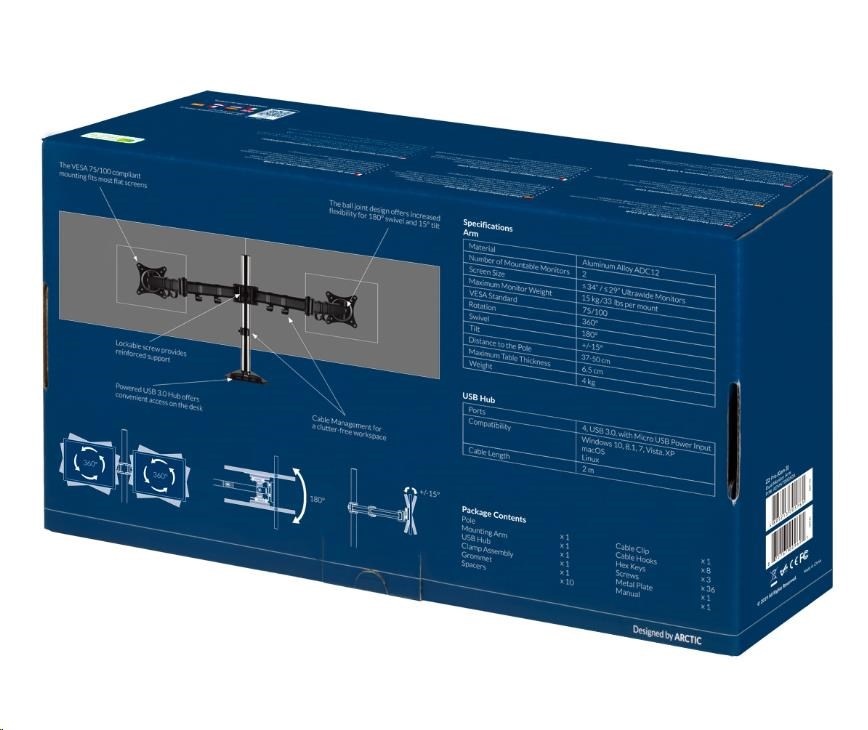Kód: 496589Prodejní číslo: AEMNT00050AARCTIC stolní držák Z2 Pro (Gen3) pro 2x LCD do 34", nosnost 2x15kg, 4x USB HUB, černý (black)