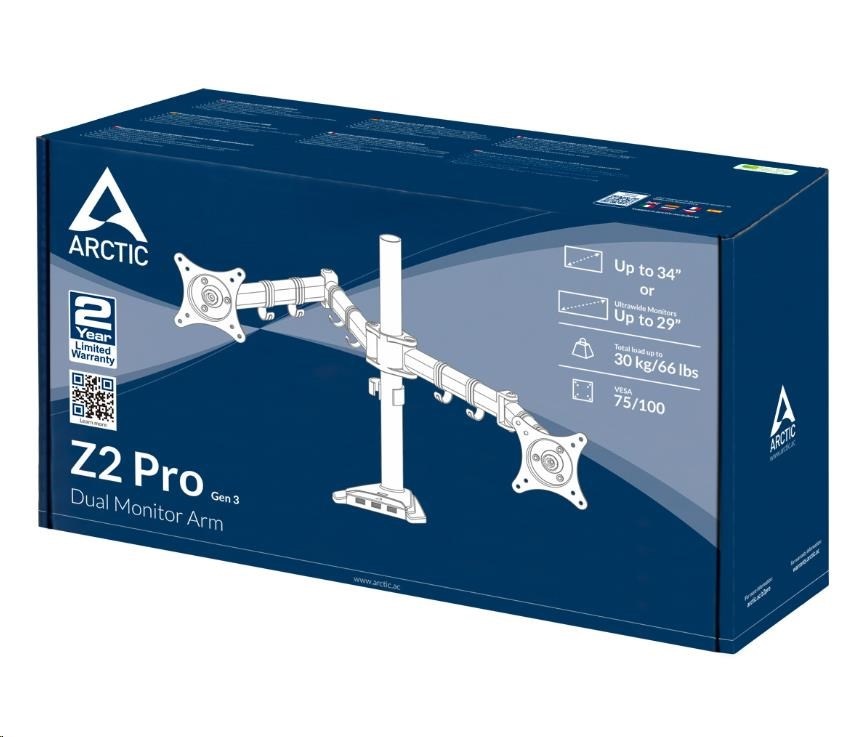 Máte k produktu dotaz? Zeptejte se nás.Hodnocení produktu ARCTIC stolní držák Z2 Pro (Gen3) pro 2x LCD do 34", nosnost 2x15kg, 4x USB HUB, černý (black)