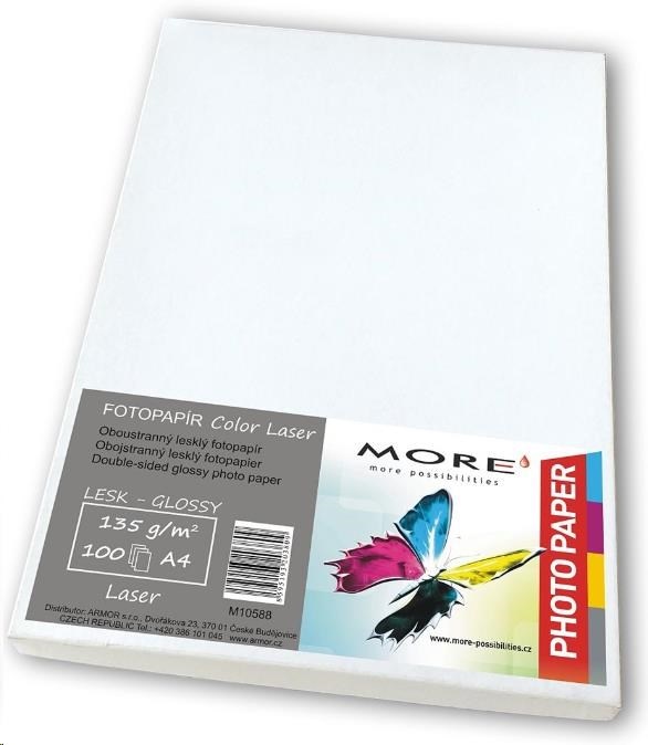 | Urceno pro | Oboustranný lesklý papír pro barevné laserové tiskárny MORE Hlazený Color Laser papír; 135g/m2 |