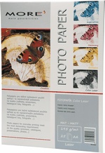 Fotopapír MORE M10580 Hlazený matný papír pro barevné laserové tiskárny. Formát A4, gramáž 195g/m2, v balení 25 listů..
