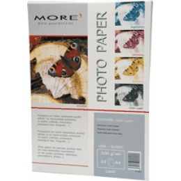 Fotopapír MORE M10581 Oboustranný lesklý papír pro barevné laserové tiskárny. Formát A4, gramáž 200g/m2, v balení 25 listů..