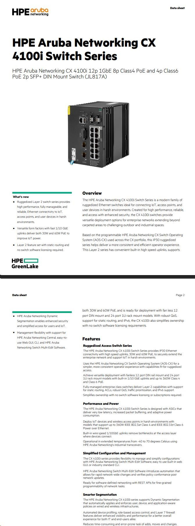 Diskuze k produktu Aruba 4100i 12-port 1GbE (8-port Class 4 POE and 4-port Class 6 POE) 2-port SFP+ DIN Mount Switch JL817A RENEW