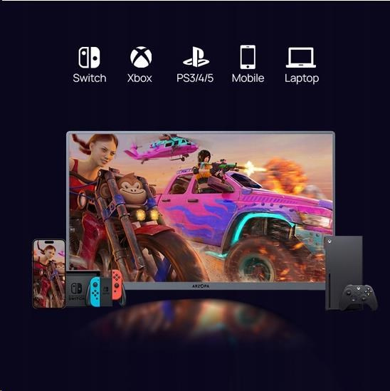 Monitor Arzopa A3C Pro je kompatibilní se širokou škálou zařízení, takže je vhodný jako přídavná obrazovka k notebooku, chytrému telefonu, konzoli, stolnímu počítači nebo tabletu. Díky konektorům USB-C a HDMI lze monitor připojit k PS4, PS5, Xboxu, Nintendu Switch a dalším mobilním zařízením. Díky jedinému připojení můžete využít další obrazovku ke zvýšení produktivity nebo si užít hry na větší ploše.