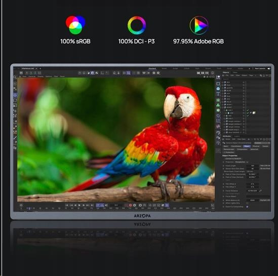 Panel OLED v monitoru Arzopa A3C Pro poskytuje 8bitovou barevnou hloubku a realistickou reprodukci obrazu. Vysoký jas 400 nitů a nekonečný kontrast vám umožní vychutnat si dokonalou viditelnost i ve světlých místnostech. Díky 100% pokrytí barevného prostoru DCI-P3 a podpoře HDR10 je navíc obraz plný detailů a barvy živé a přirozené. Jedná se o skvělou volbu pro grafiky, fotografy a všechny, kteří ocení kvalitu obrazu na nejvyšší úrovni. Díky tak široké paletě barev monitor dokonale reprodukuje světlé i tmavé scény.