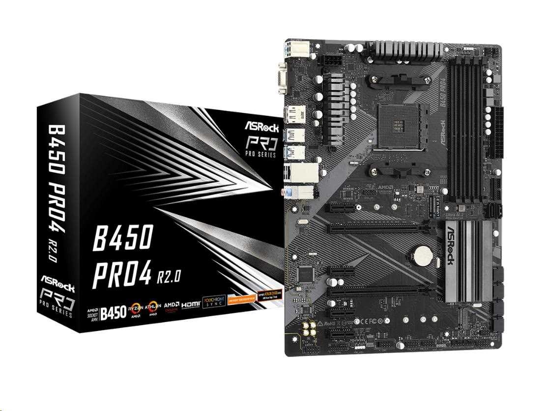 ASRock MB Sc AM4 B450 PRO4 R2.0, AMD B450, 4xDDR4, 1xDP, 1xHDMI, VGA