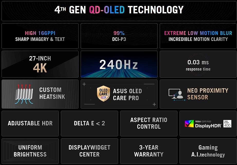 Diskuze k produktu ASUS LCD 27" ROG Strix OLED XG27UQDMS Gaming monitor, 3840x2160, Flat, G-Sync, 240Hz, 0,03ms, HDMI, DP, VESA