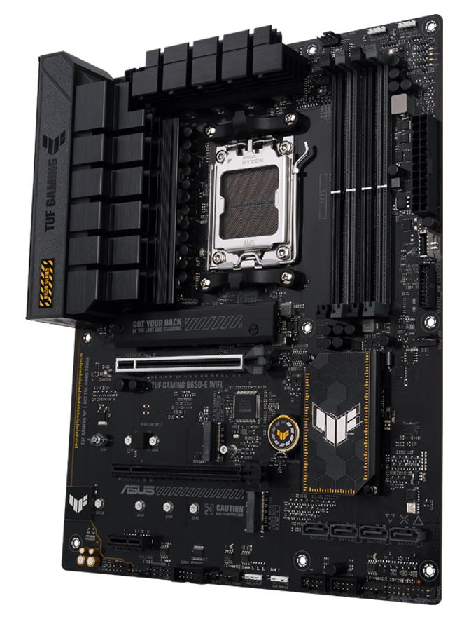 ASUS TUF GAMING B650-E WIFI využívá všechny základní prvky nejnovější patice AM5 pro stolní procesory AMD Ryzen™ a kombinuje je s funkcemi připravenými ke hře a prokázanou odolností. Tato základní deska, navržená s komponentami vojenské kvality, vylepšeným řešením napájení a komplexním systémem chlazení, překonává očekávání se skálopevným a stabilním výkonem pro maratónské hraní. Základní desky TUF GAMING také procházejí přísným testováním odolnosti, aby bylo zajištěno, že zvládnou podmínky, kdy ostatní mohou selhat. Esteticky tento model zahrnuje robustní nečerné a geometrické designové prvky, které odrážejí spolehlivost a stabilitu, která definuje řadu TUF GAMING.
