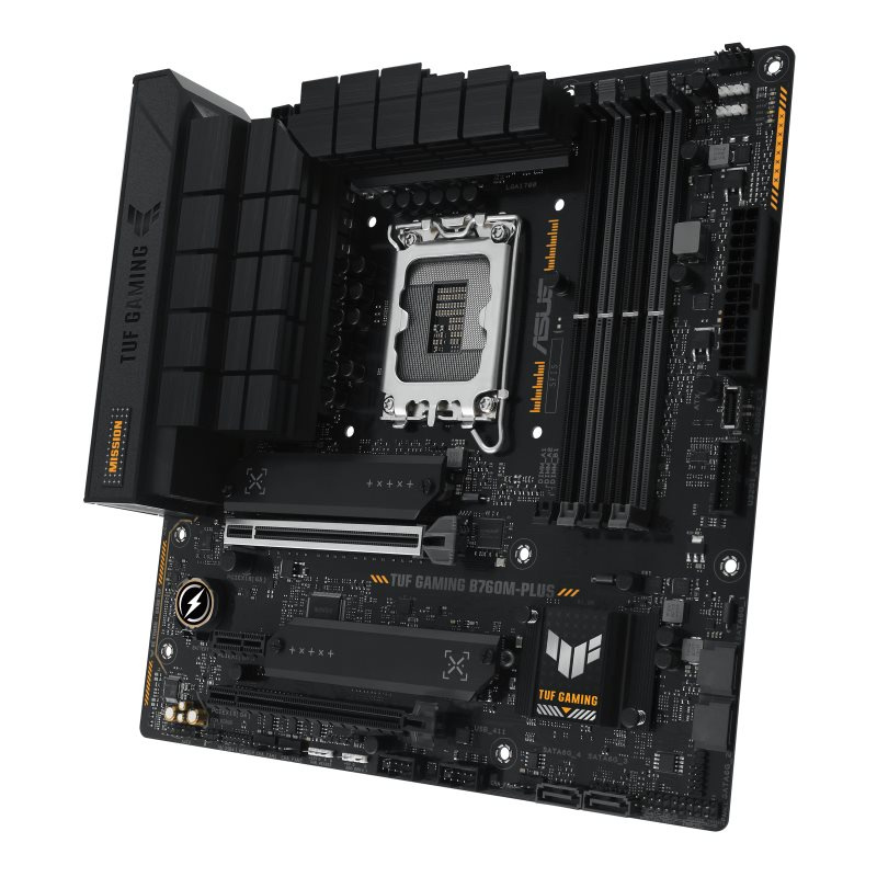 TUF GAMING B760M-PLUS takes all the essential elements of the latest Intel® processors and combines them with game-ready features and proven durability. Engineered with military-grade components, an upgraded power solution and a comprehensive cooling system, this motherboard goes beyond expectations with rock-solid performance for marathon gaming. TUF GAMING motherboards also undergo rigorous endurance testing to ensure that they can handle conditions where others may fail. Aesthetically, this model incorporates an embossed nameplate and geometric design elements to reflect the dependability and stability that defines the TUF GAMING series.